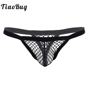 TiaoBug Low Rise Lingerie See Through Fishnet Bulge Pouch T-Back Thongs Bikini Briefs Men Hot Sexy Swimwear Underwear Underpants $14.95 $23.95
