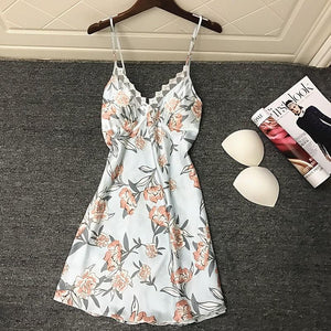 Women Nighties Night Suit Dress Summer Sexy Nightgowns Sleepwear Satin Nightgown Female Home Dress Elegant Nightwear Chest Pads $20.95 $65.95