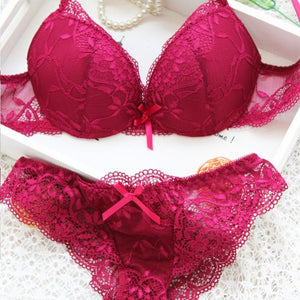 Woman Lace Sexy Floral Push-Up Panties Hollow Sweet Transparent Comfy Fit Bowtie Underwear Sleepwear Bra Sets $16.95 $33.95
