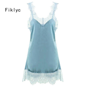 Fiklyc nightgowns & sleepshirts female sexy V-neck faux silk lengerie mini nightdress women's padded nightdress nighties 2019 $31.95 $62.95