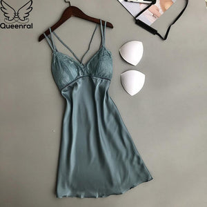 Queenral Sleepwear Nightgowns Sleepshirt With Chest Pad Night gown Women Night Dress Sexy Lace Ladie Nightwear Lingerie Nighty $21.95 $79.95