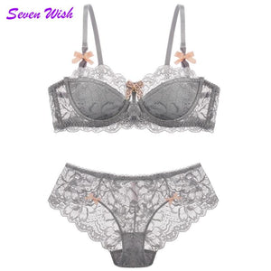 CINOON Women sexy underwear bra embroidery lingerie set thin lace bra transparent ultra-thin temptation push up bra set $18.95 $51.95